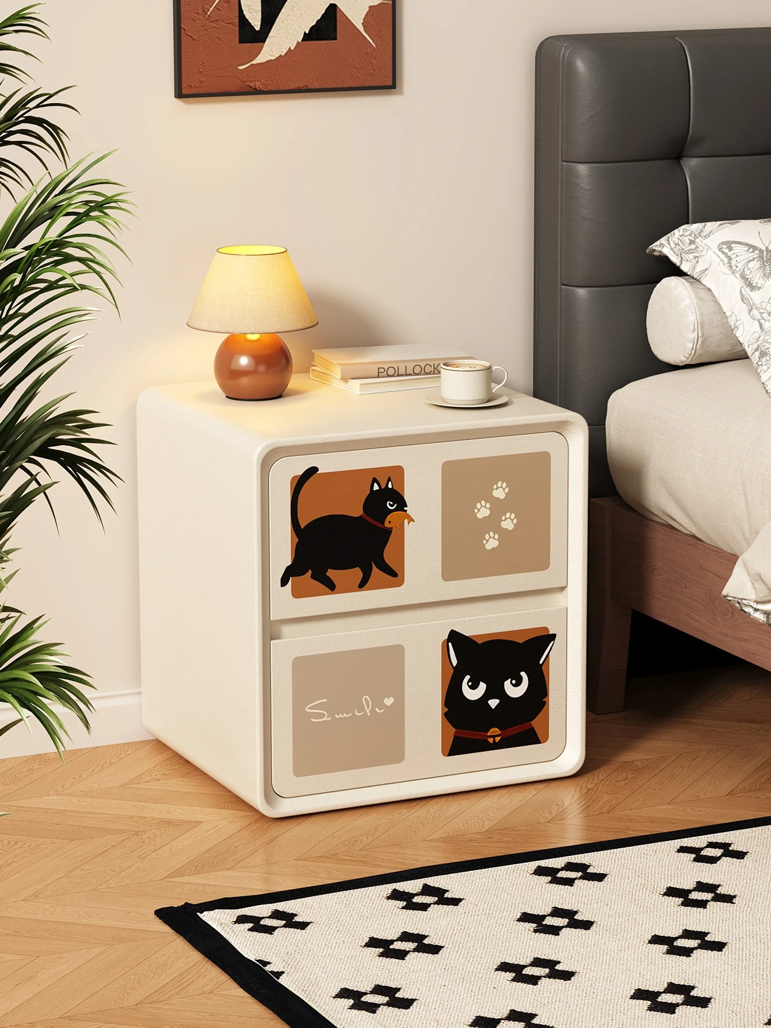 Modern Minimalist Cream Bedside Table - Creative Small Nightstand for Bedroom Storage, Sofa Side Table, and Organizer Cabinet
