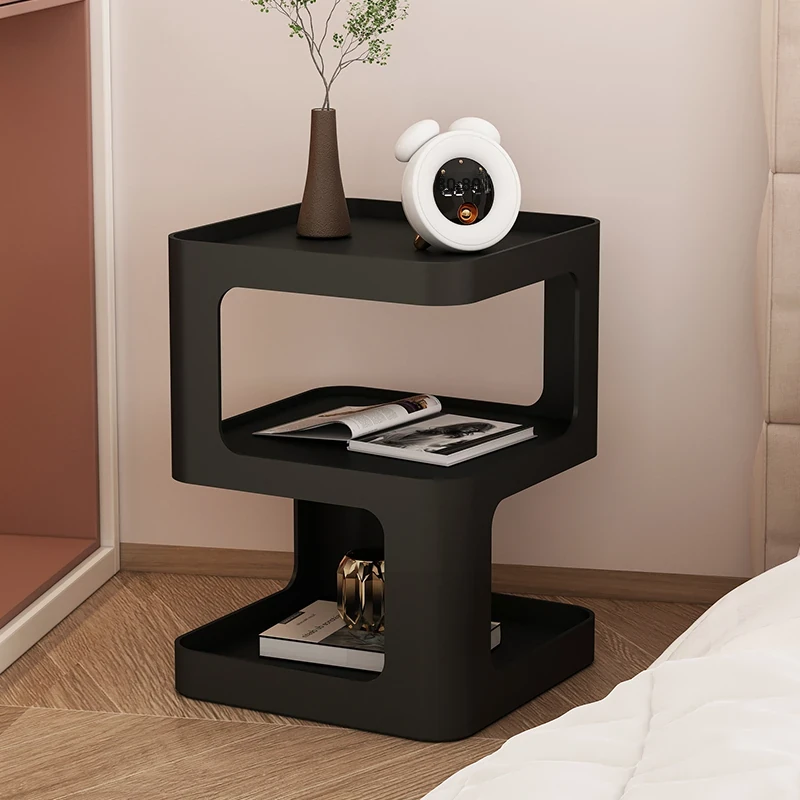 Stylish Black Iron Bedside Table - Modern Minimalist Moveable Side Table for Creative Living Spaces, Perfect for Small Rooms and Artful Decor