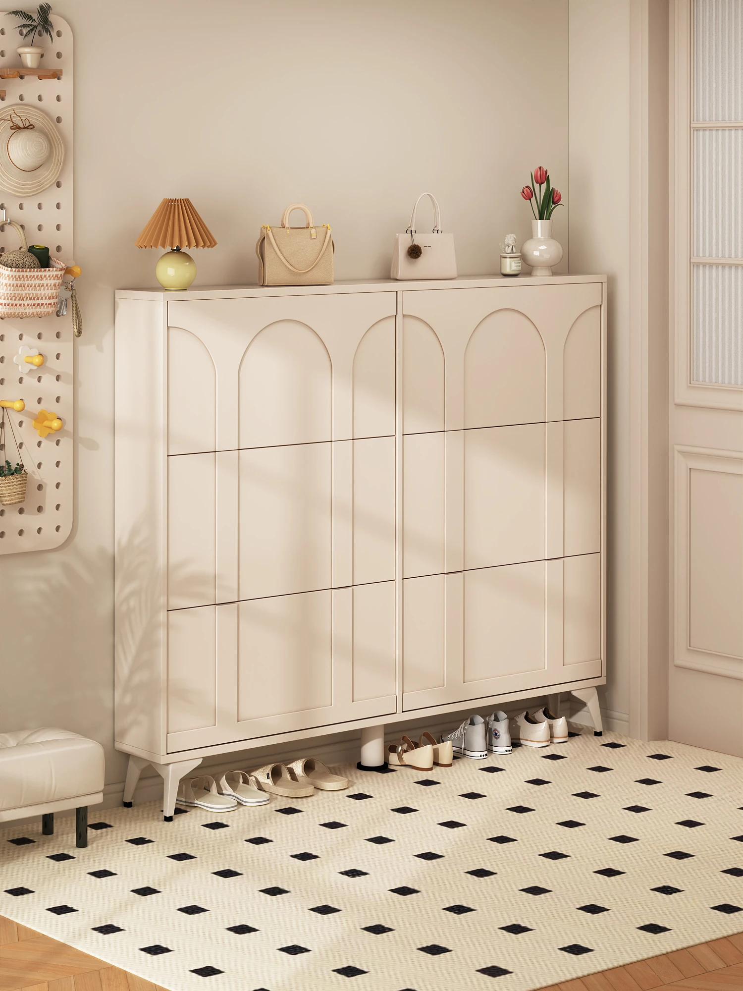 Ultra-Slim Cream Wind Flip Shoe Cabinet - 2025 New Arrival! Trendy Entryway Storage Solution for Home, Perfect for Indoor Use. Stylish and Functional Shoe Rack for Your Entrance Hall!