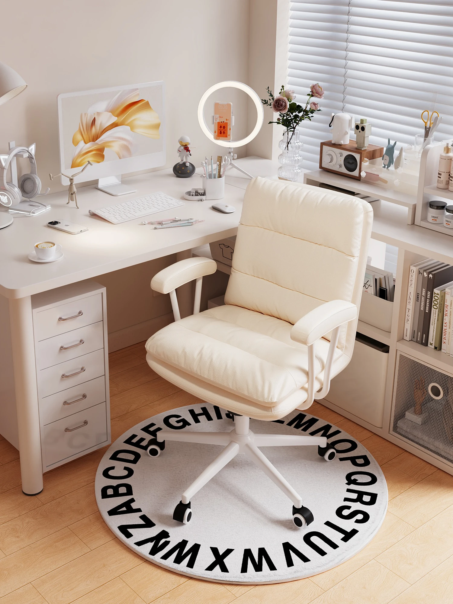 Ergonomic Computer Chair for Home: Comfortable & Stylish Makeup Chair for Girls, Perfect for Dormitory Study & Desk Use with Adjustable Height and Swivel Backrest