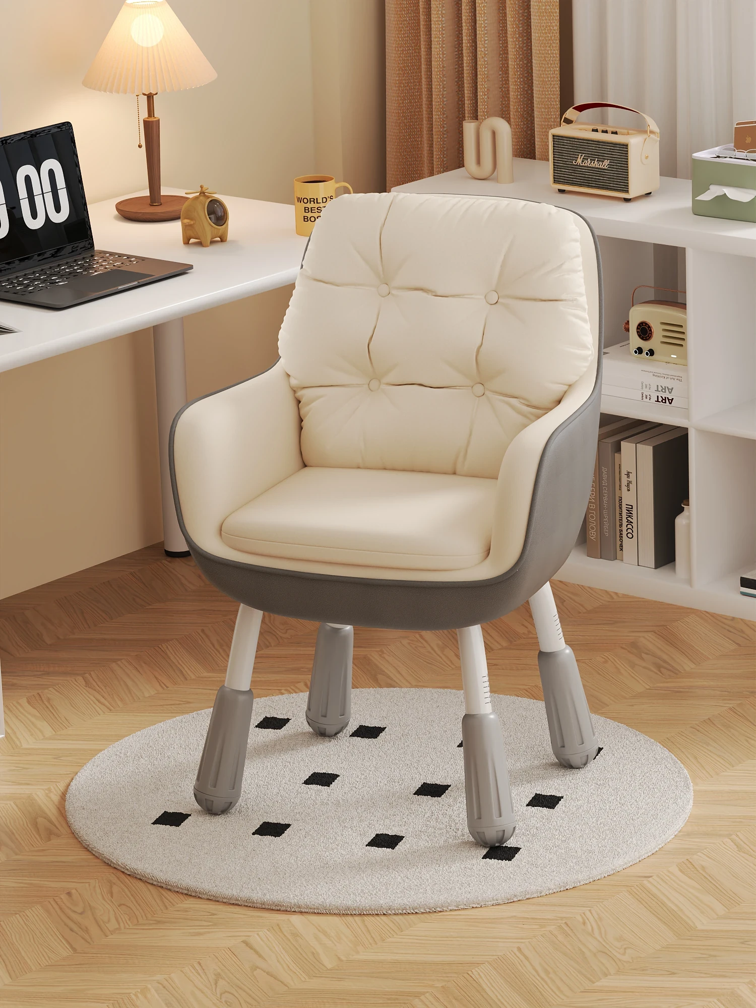 Elegant Home Office Chair - Comfortable Computer Desk Chair for Long Hours, Stylish Makeup Chair with Relaxing Backrest, Perfect for Study and Leisure.