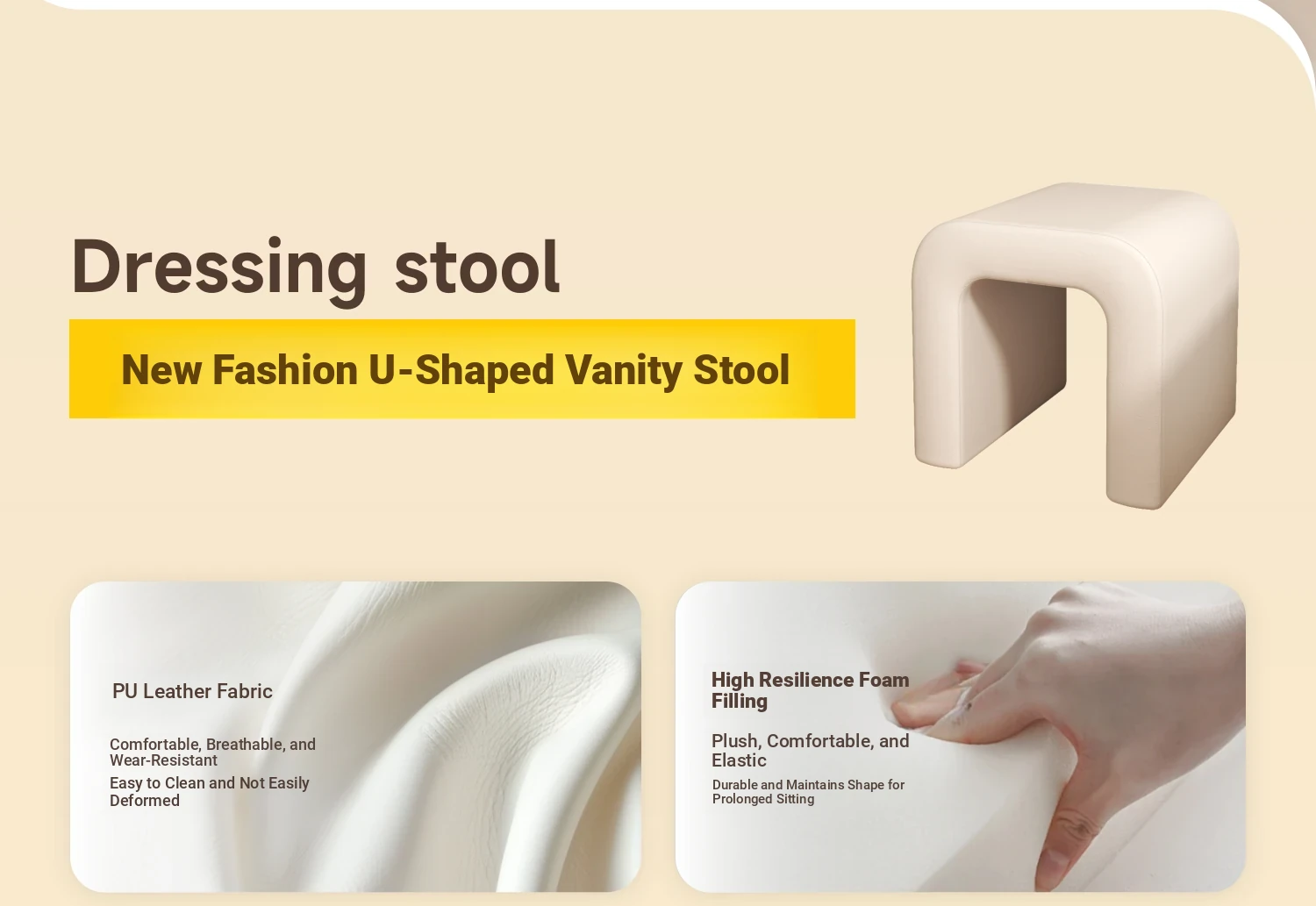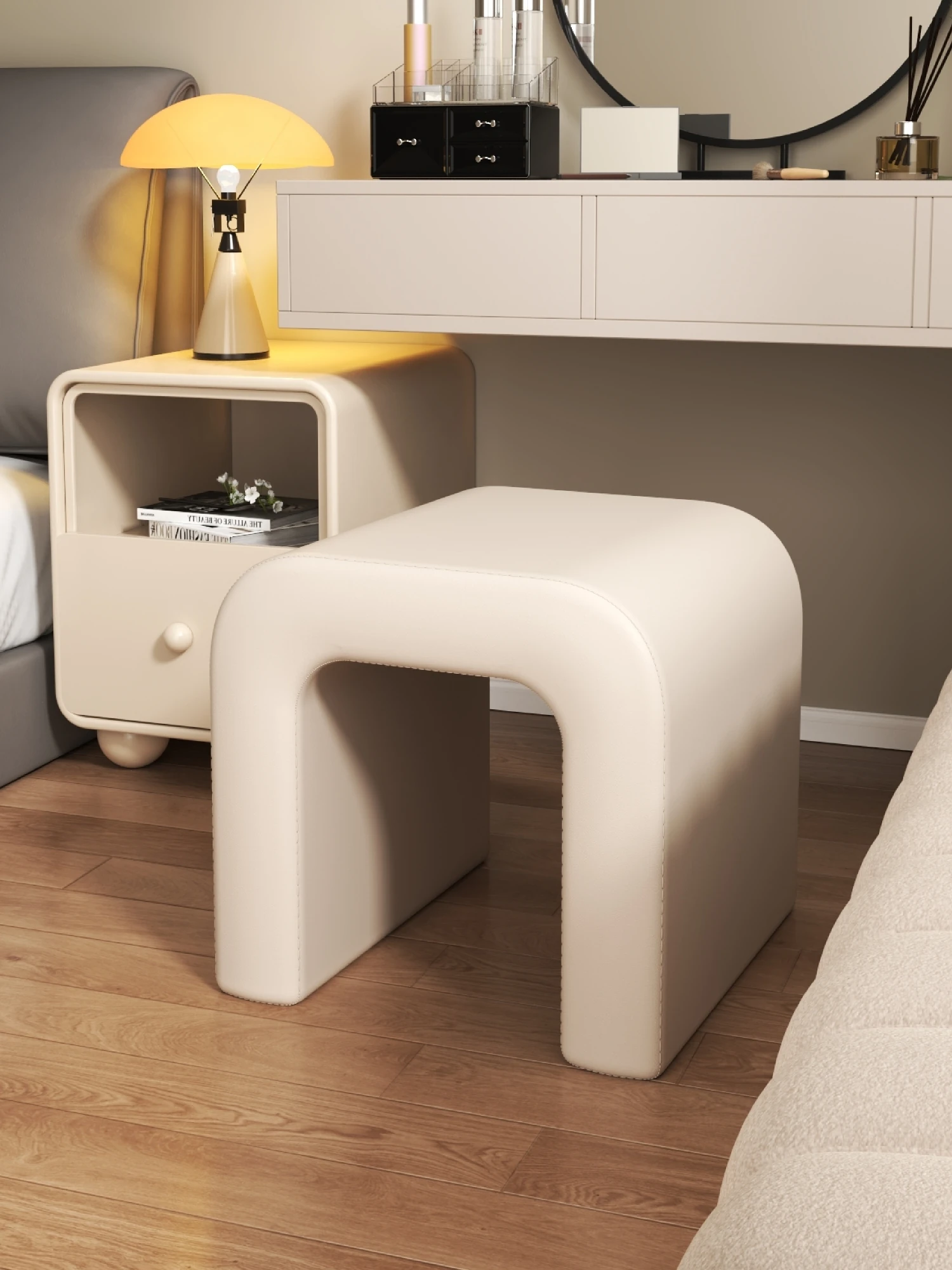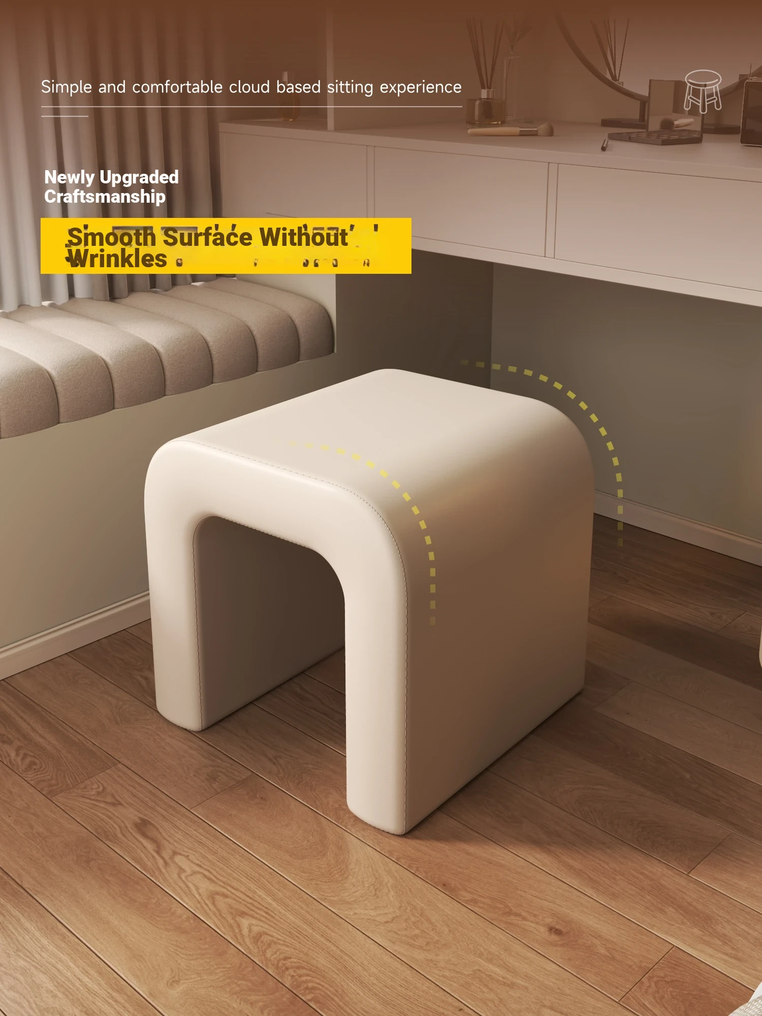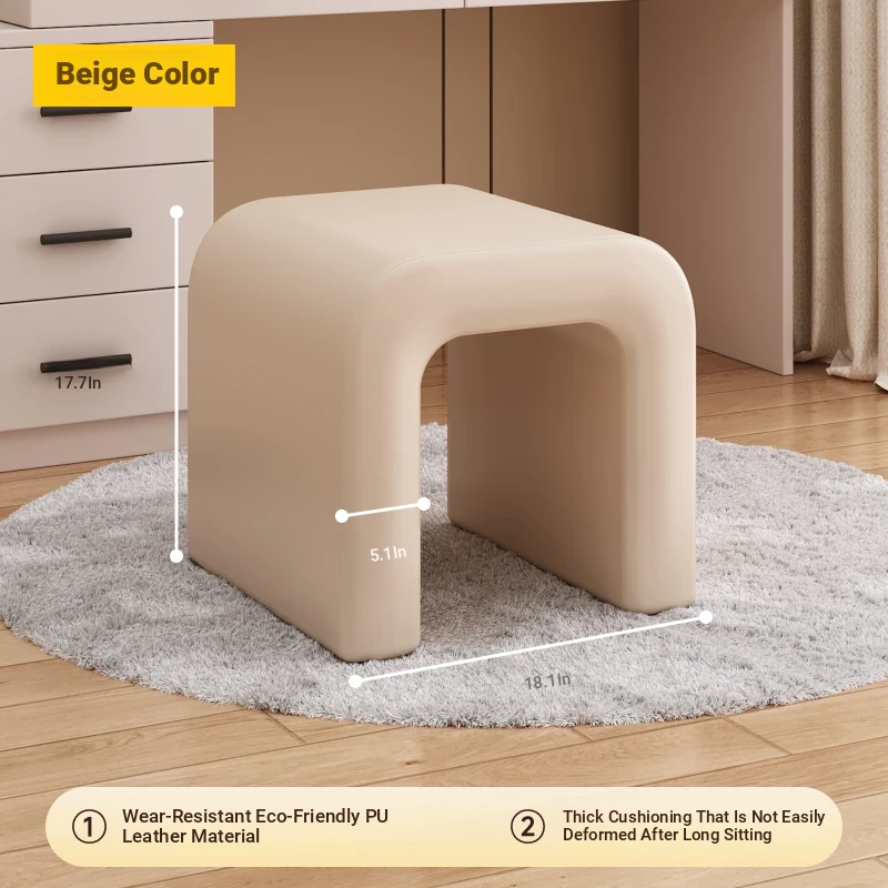 Elegant Makeup Vanity Stool for Girls - Creamy Chic Dressing Table Chair, Trendy and Creative Design, Perfect for Bedroom Decor and a Touch of Luxury.