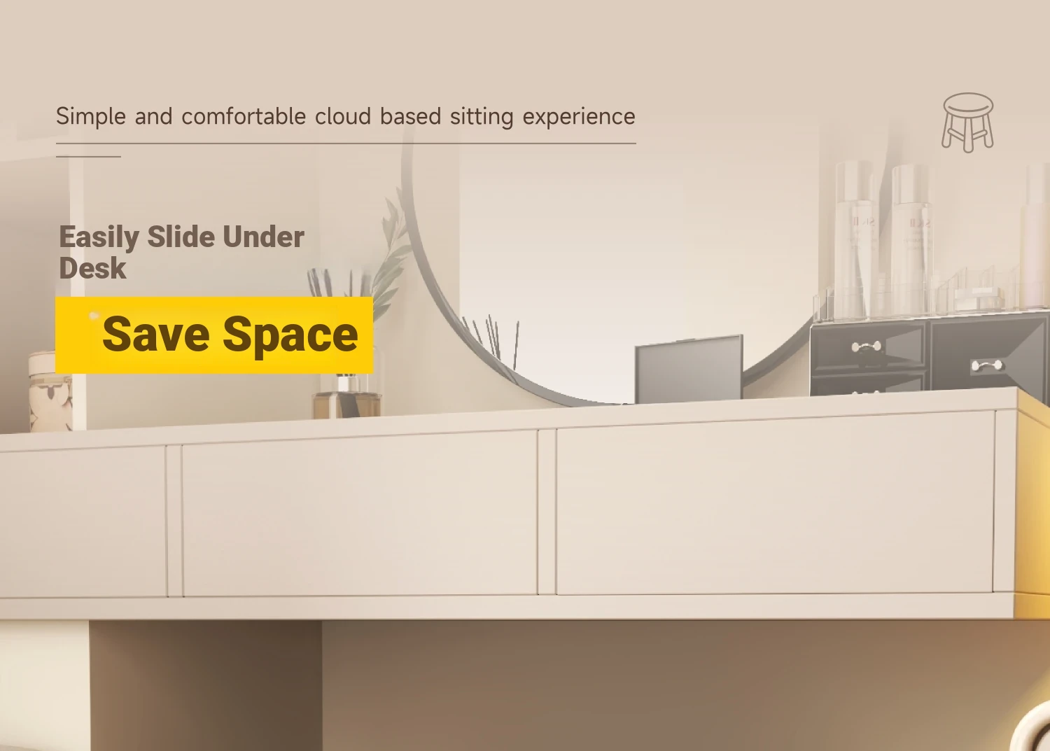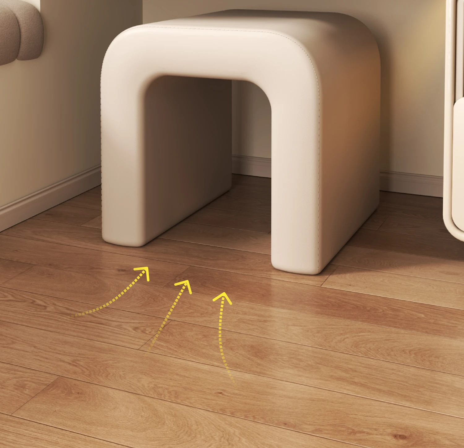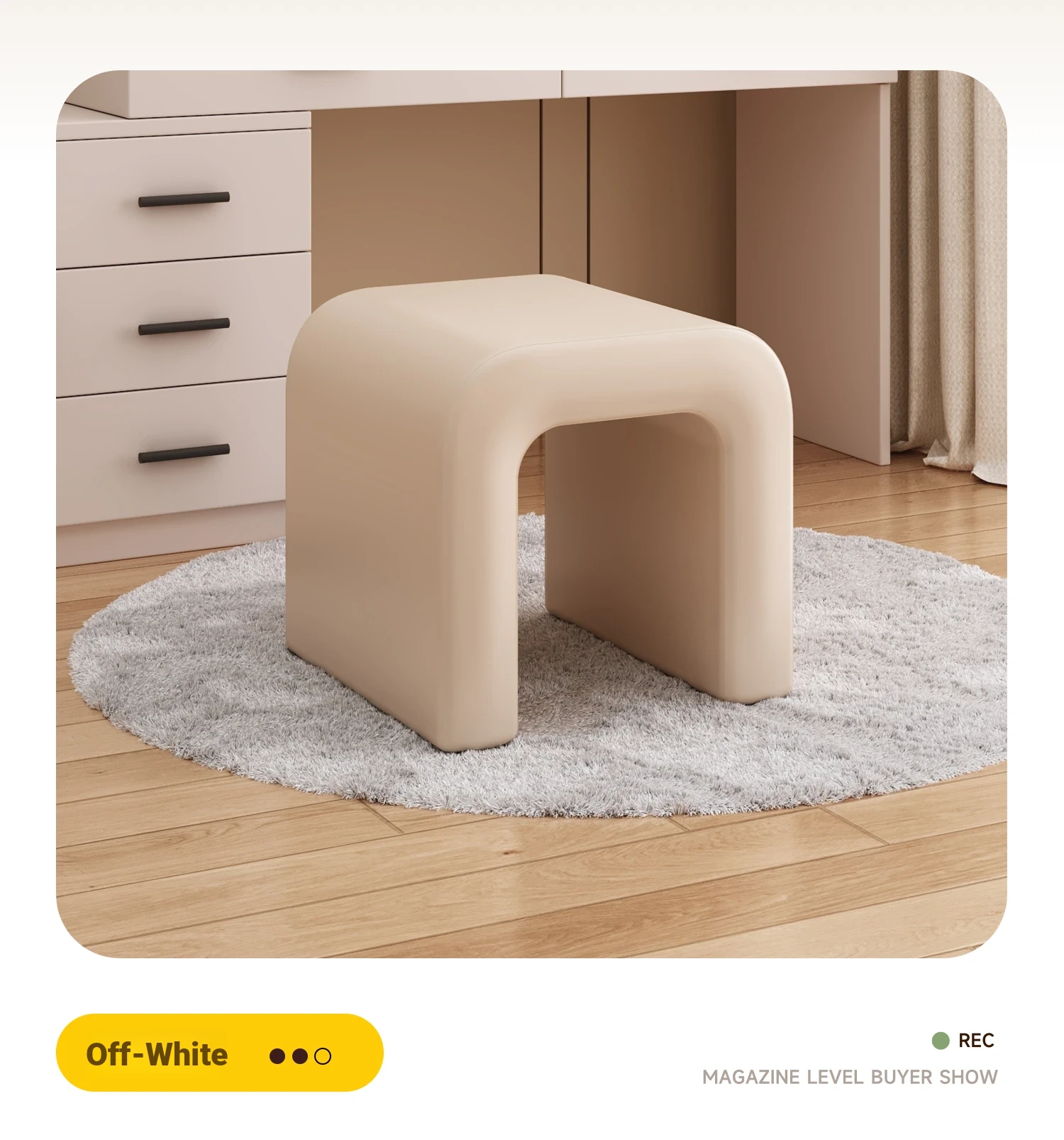 Elegant Makeup Vanity Stool for Girls - Creamy Chic Dressing Table Chair, Trendy and Creative Design, Perfect for Bedroom Decor and a Touch of Luxury.