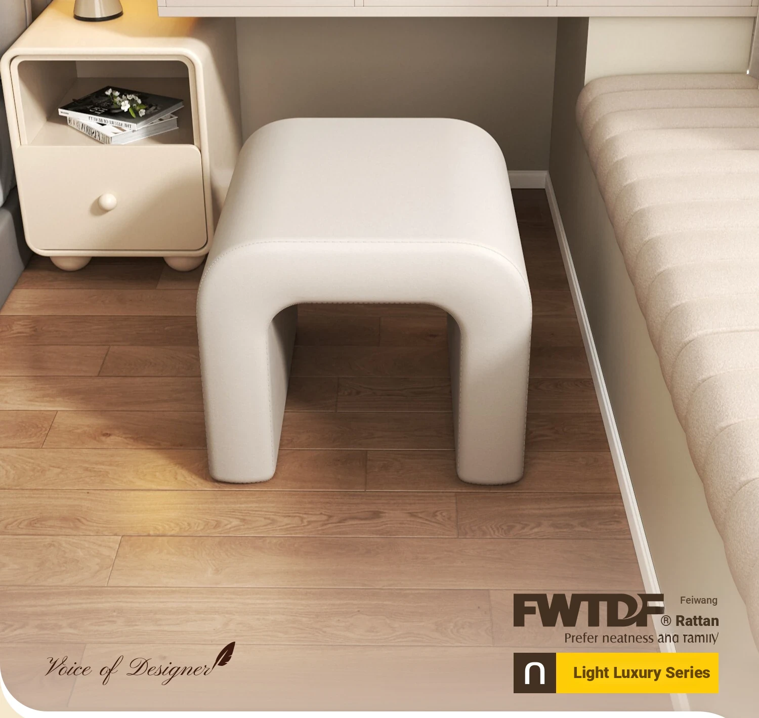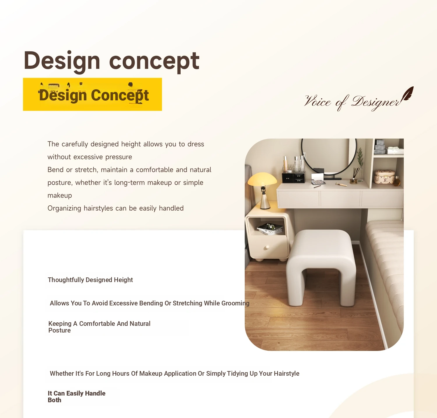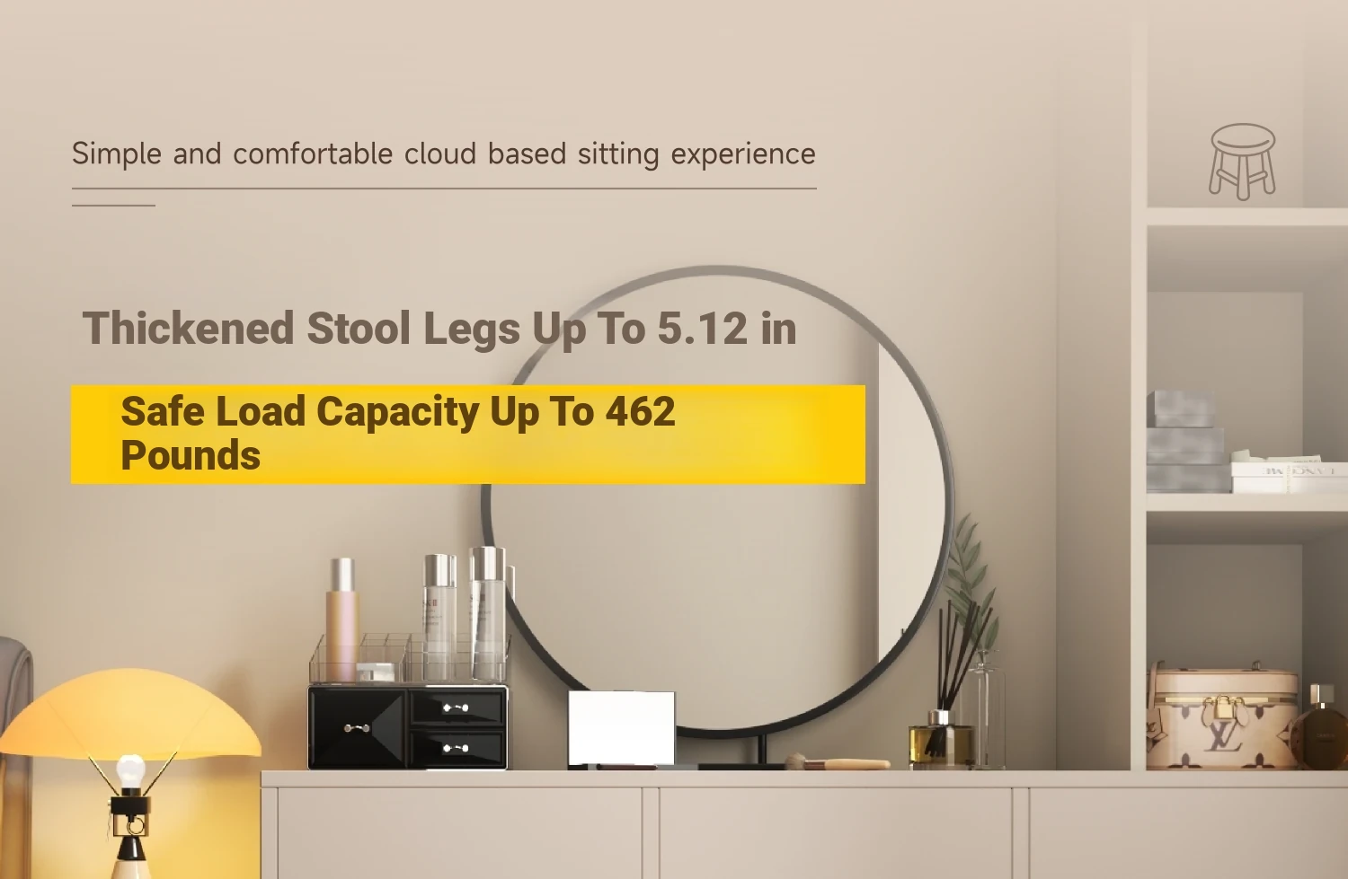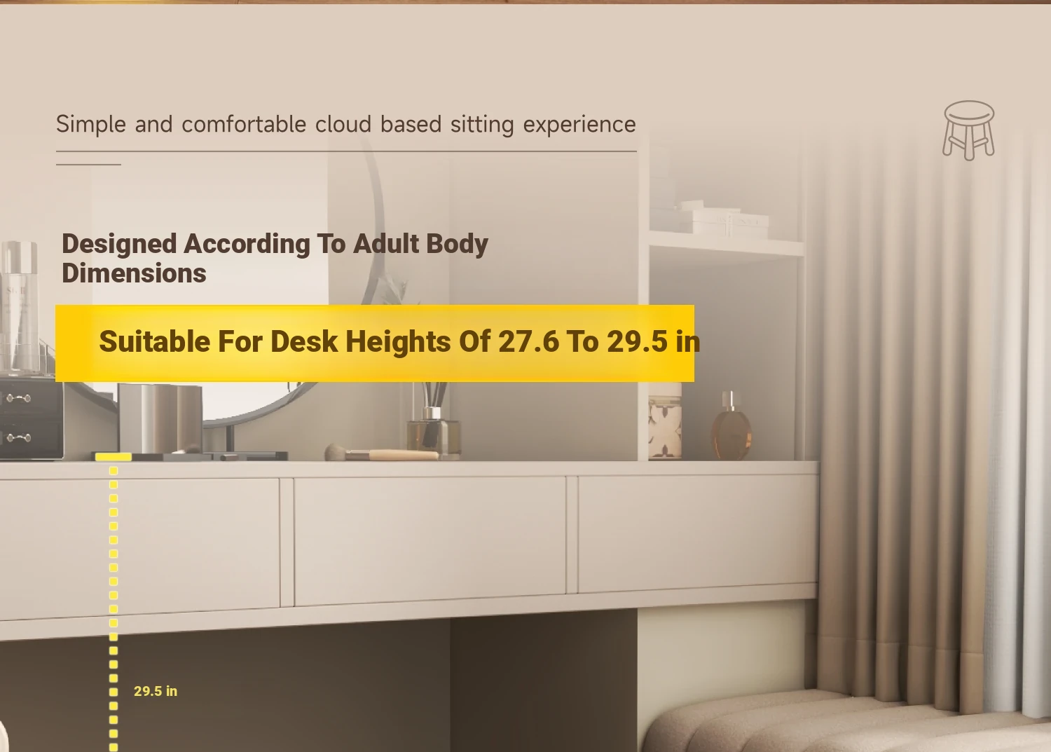 Elegant Makeup Vanity Stool for Girls - Creamy Chic Dressing Table Chair, Trendy and Creative Design, Perfect for Bedroom Decor and a Touch of Luxury.