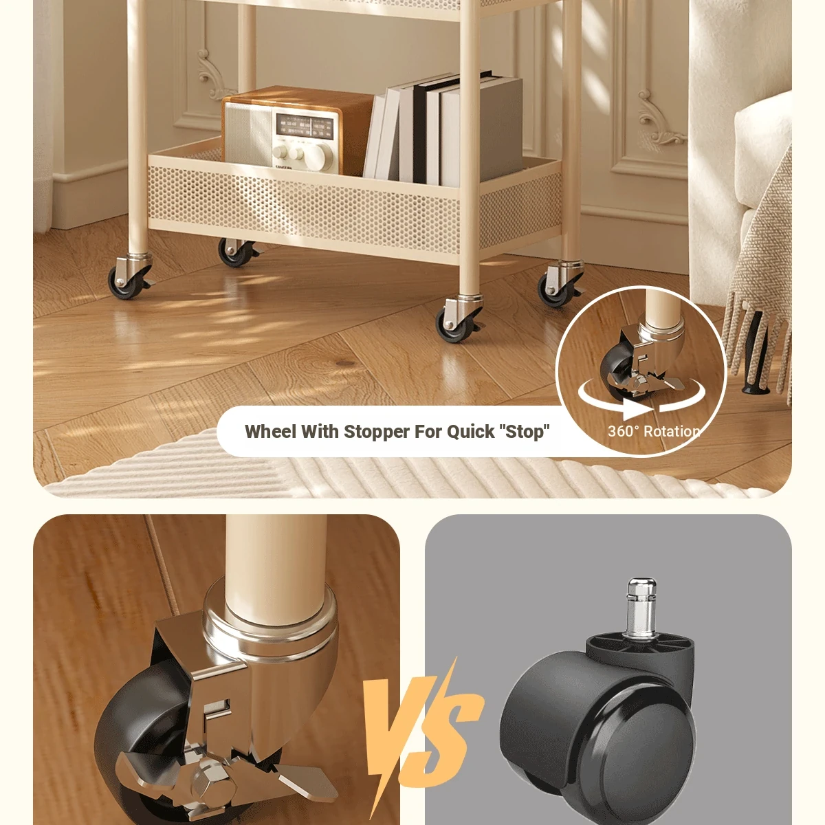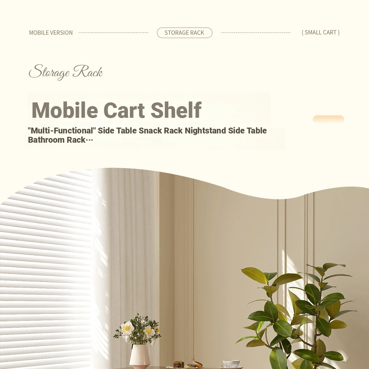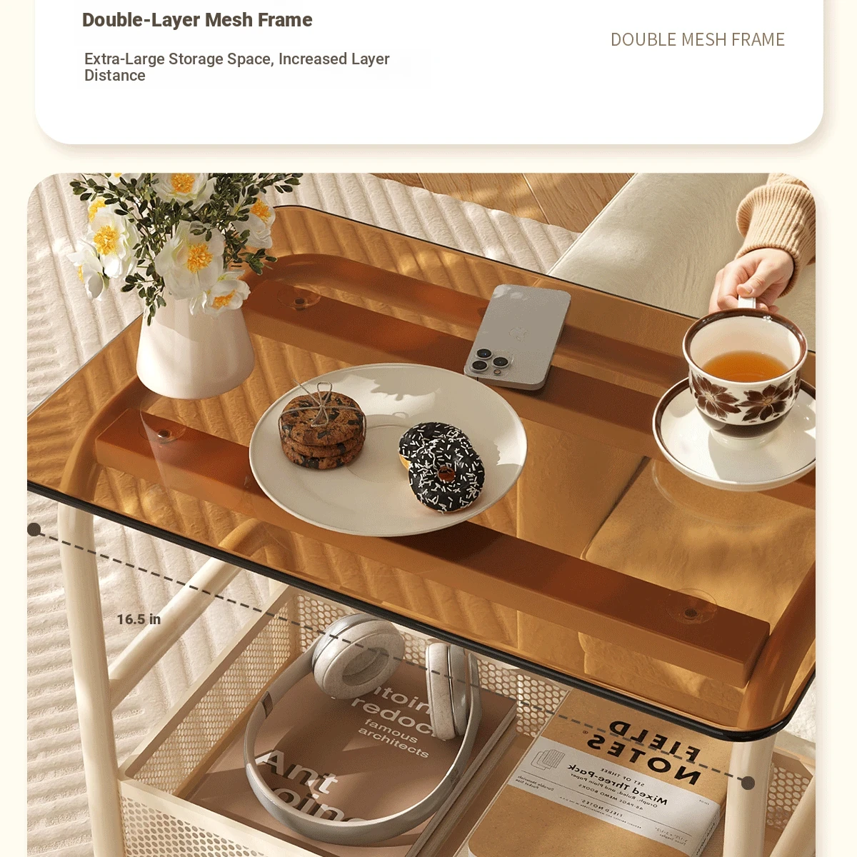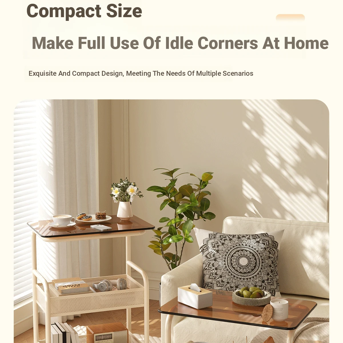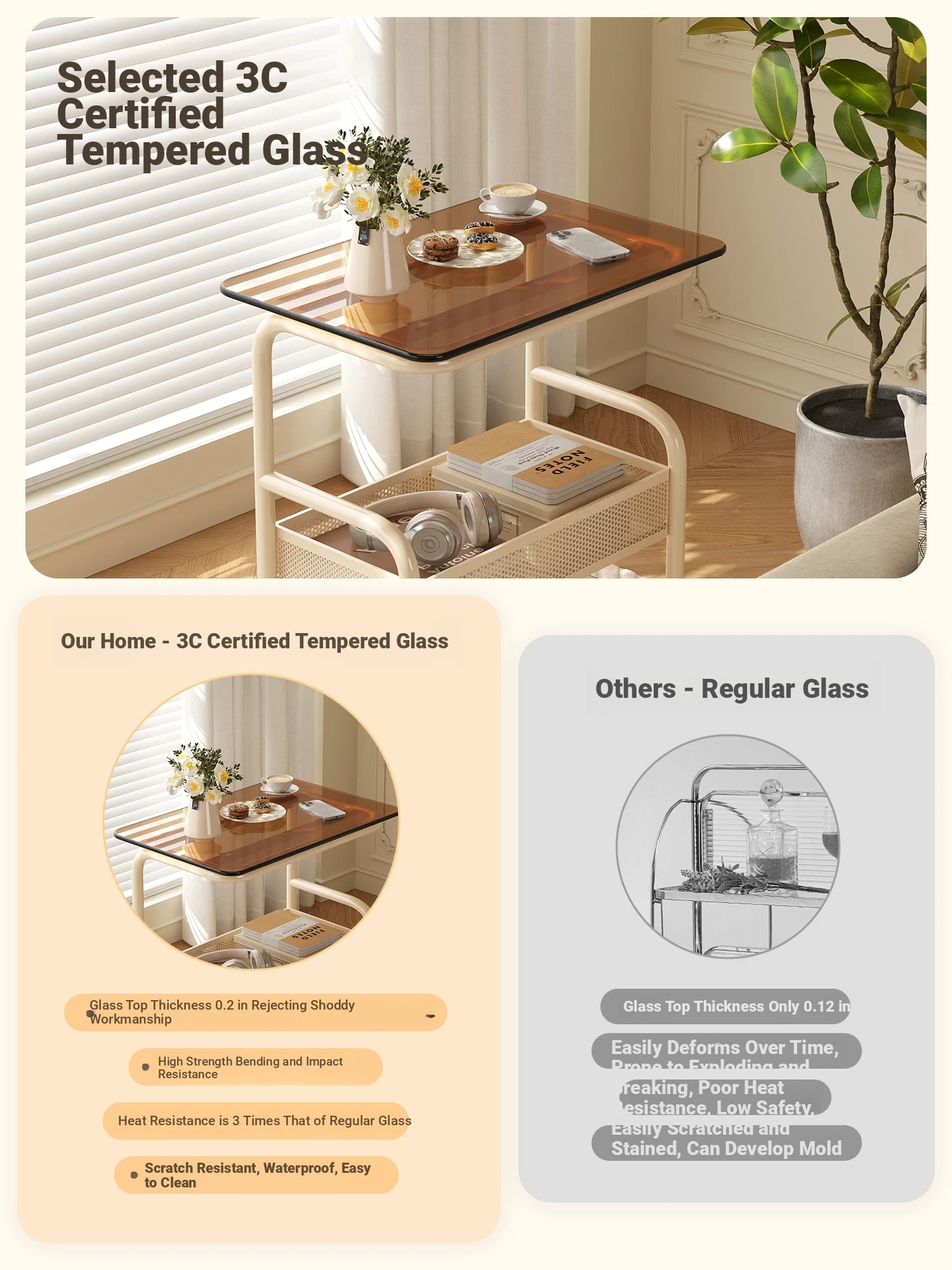 Mobile Snack Cart Table - Creamy Glass Side Table for Living Room, Sofa, or Bedside Storage - Perfect for Snacks and Small Items