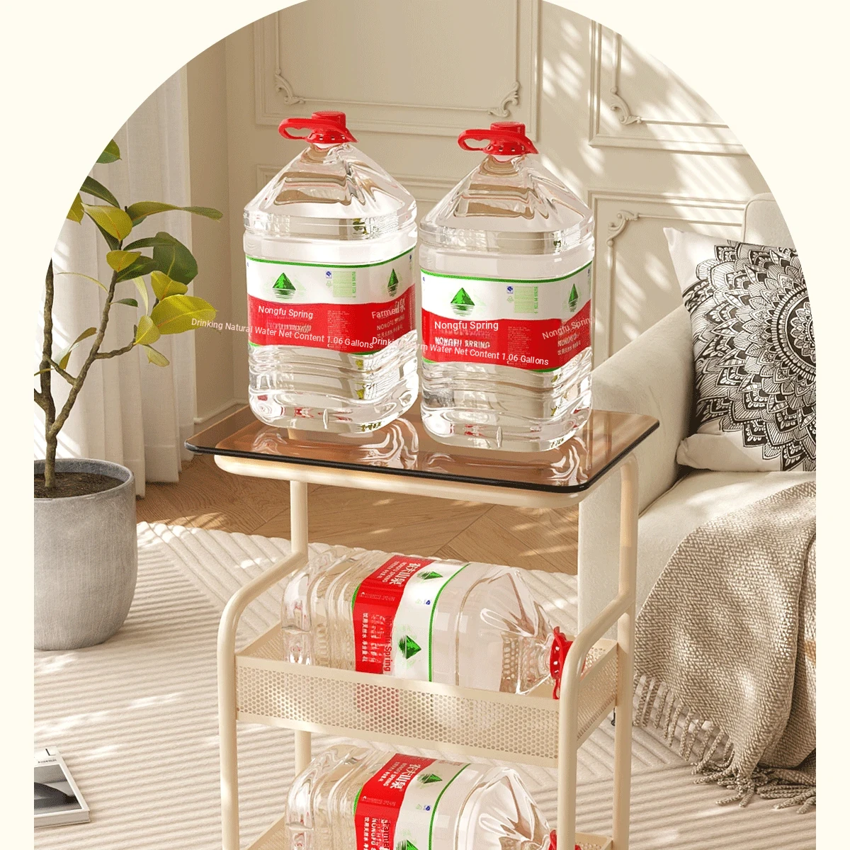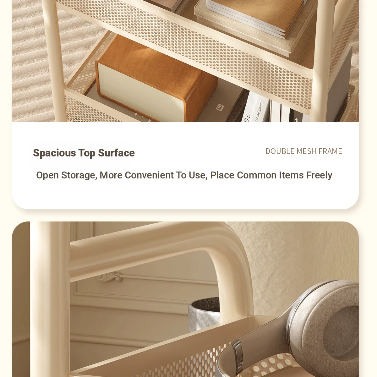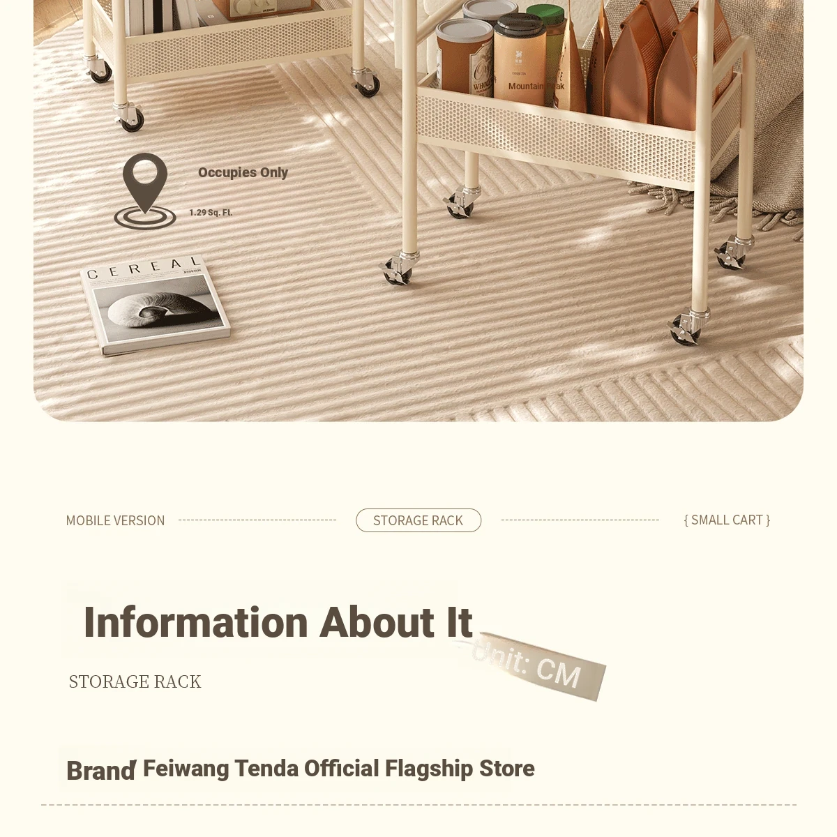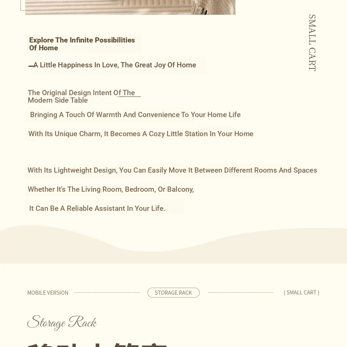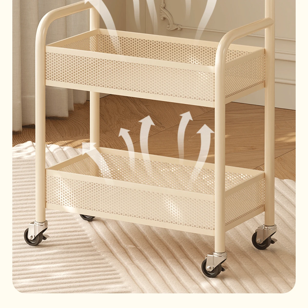 Mobile Snack Cart Table - Creamy Glass Side Table for Living Room, Sofa, or Bedside Storage - Perfect for Snacks and Small Items
