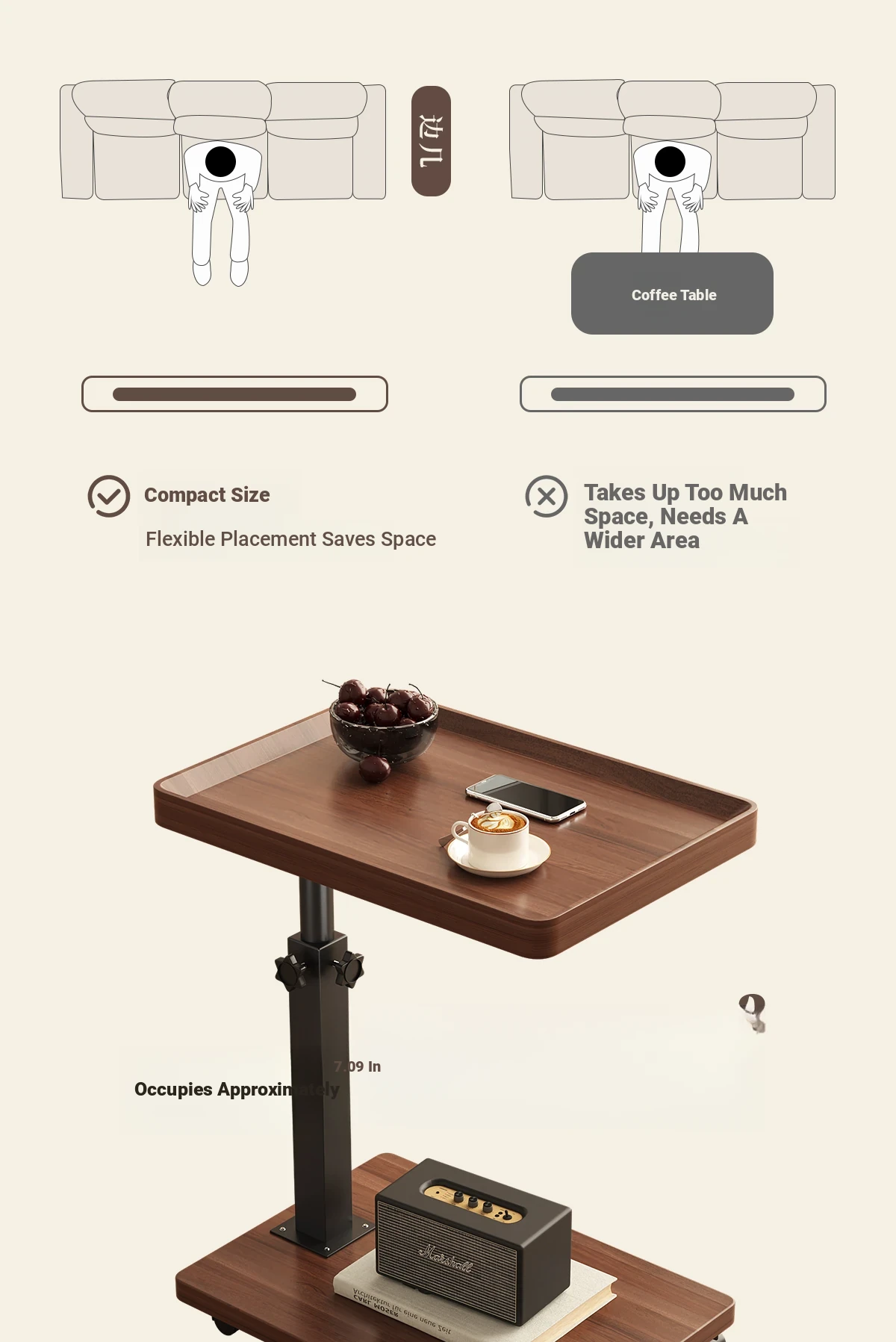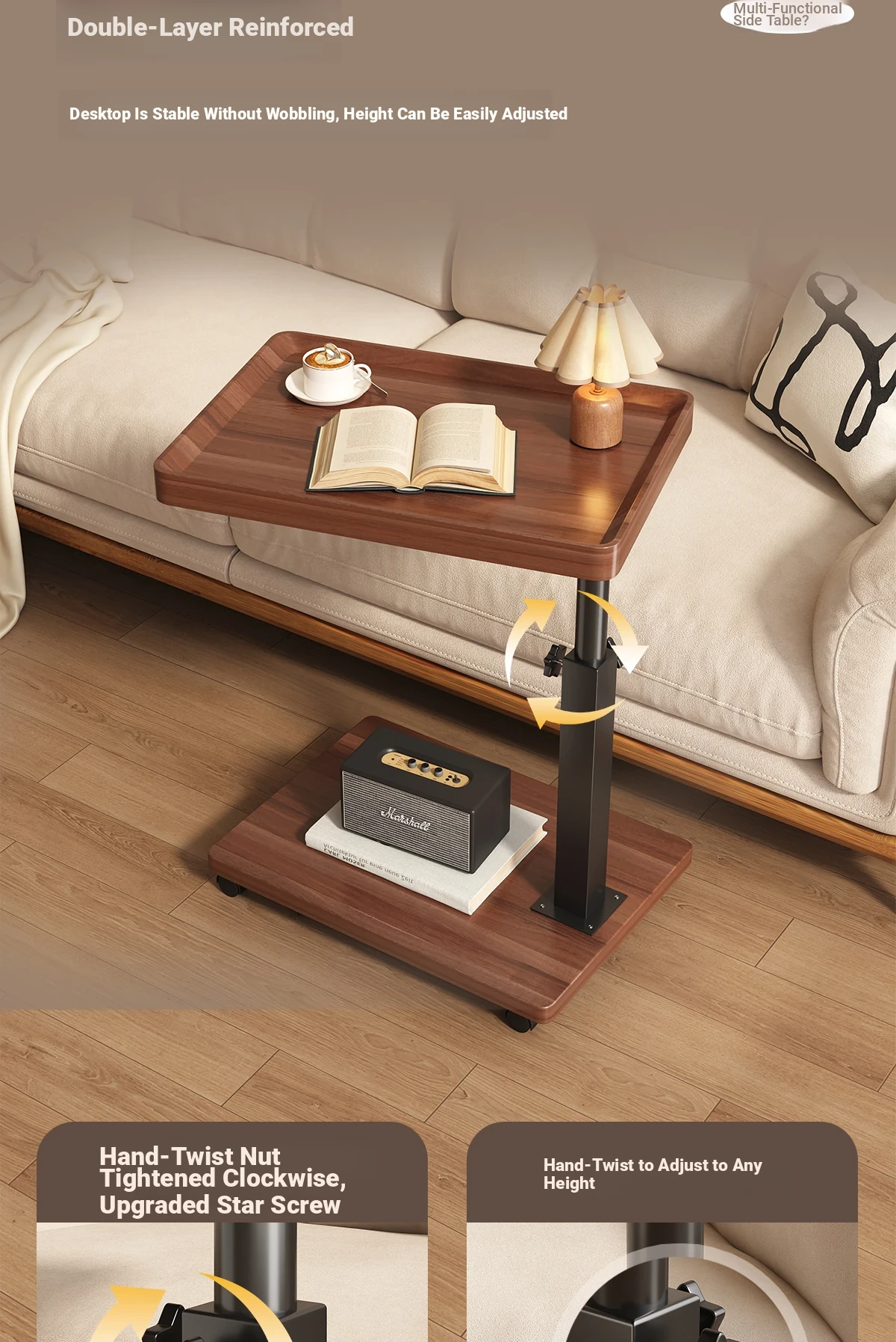 Versatile Liftable Side Table - Minimalist Sofa Side Table, Bedside Nightstand, and Balcony Coffee Table - Perfect for Small Spaces and Stylish Décor