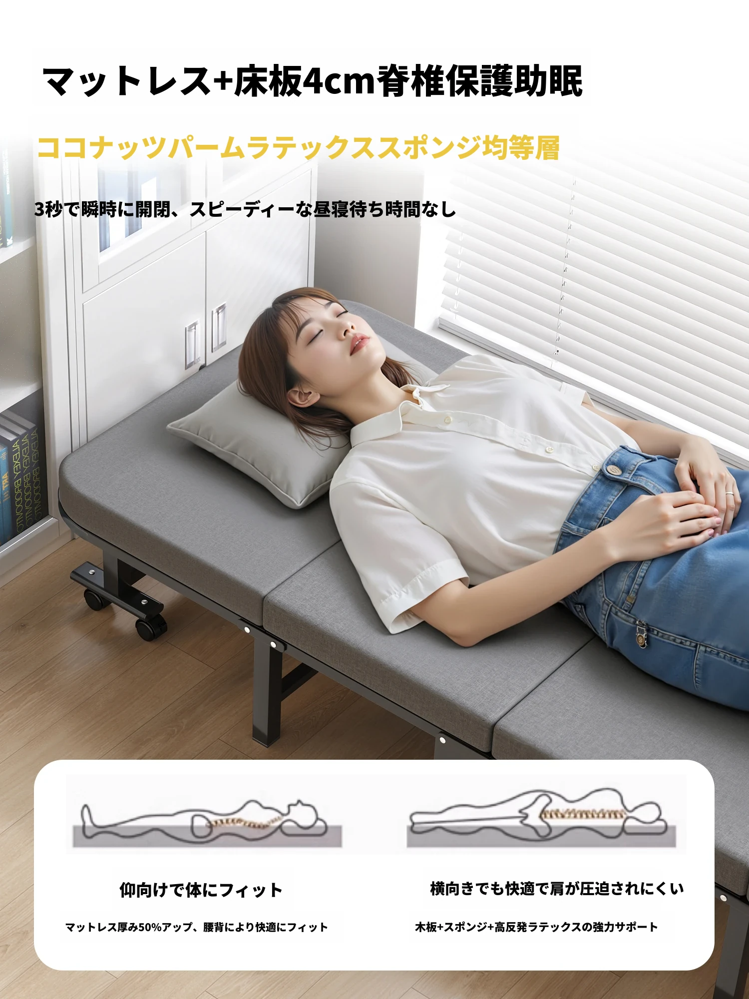 オフィスでの昼寝に最適!折りたたみ式昼寝ベッド・チェア|大人向けの便利な持ち運び可能なシンプルベッド|自宅でもリラックスできる必需品!