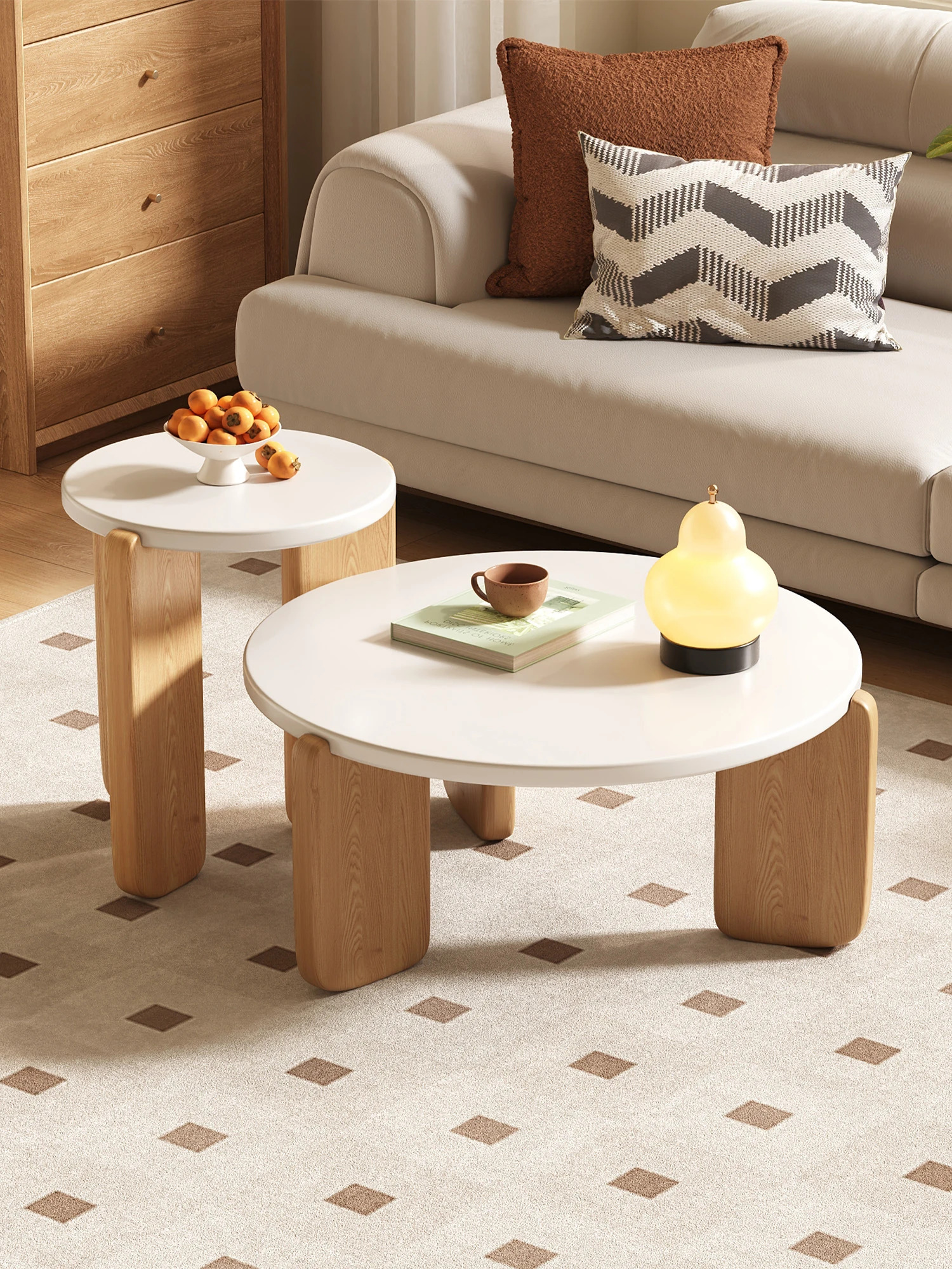 2025年新作!高級感溢れる無垢材の脚付きサイドテーブル - 小型リビングに最適な丸型デザイン。バルコニーでも映える、スタイリッシュで機能的な茶卓!