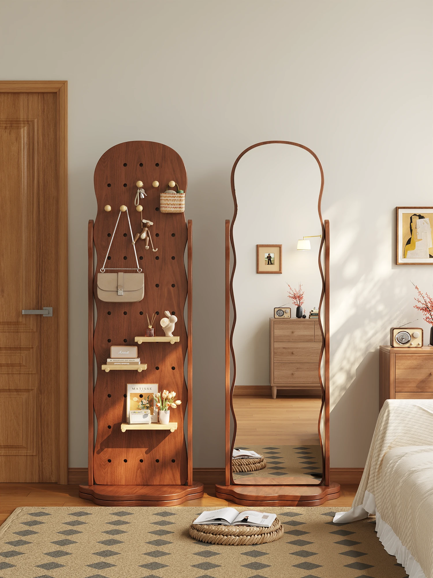 ドーナツボード回転式全身鏡 家庭用女子用 立て掛け式衣類ハンガー一体型 大型試着鏡 おしゃれな寝室にぴったり!