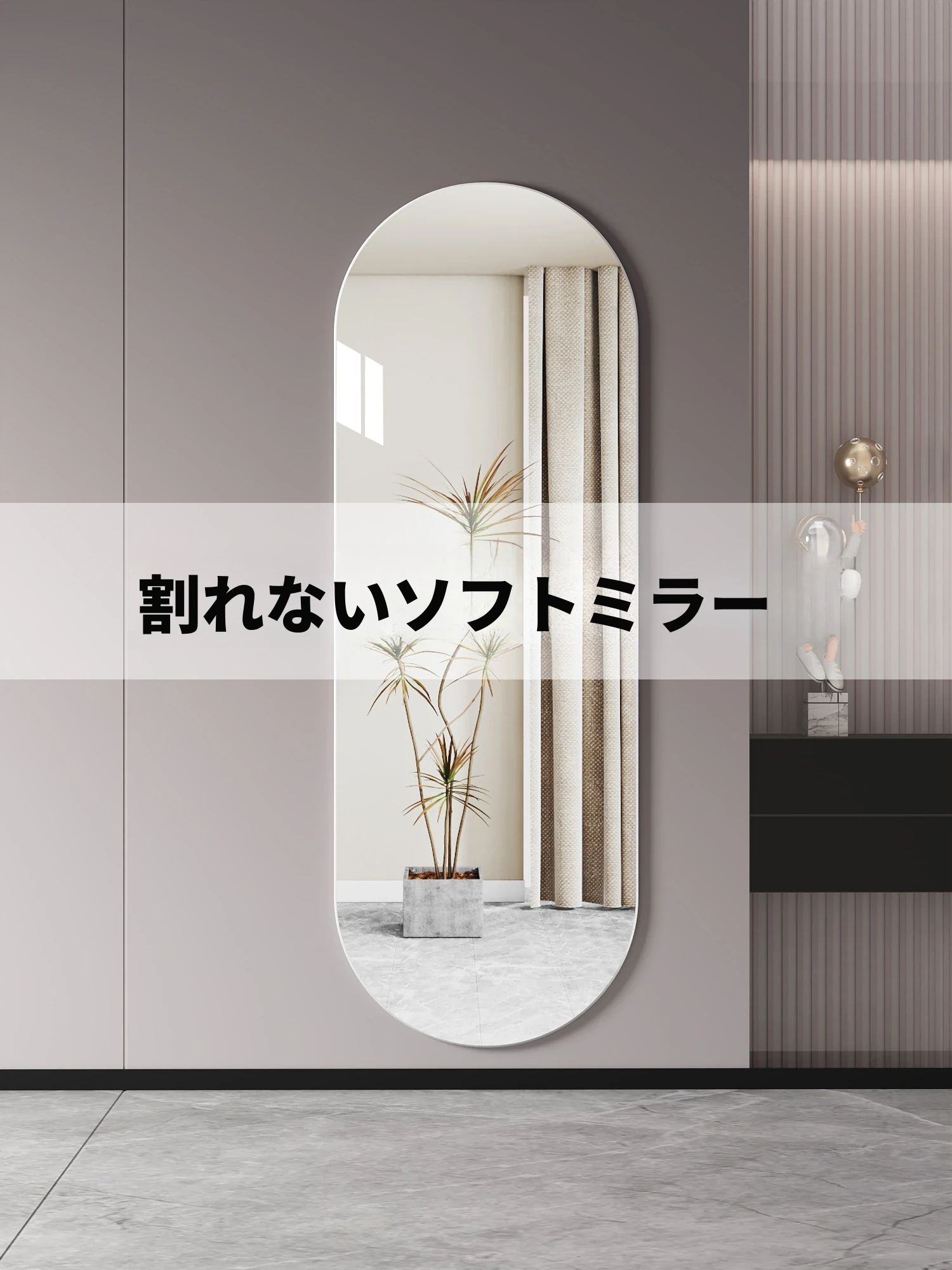 軽やかな高級感!アクリル製の柔らかい壁掛けミラー、自己粘着式で家庭用に最適。全身を映す高清晰度の変形大試着鏡、割れにくい設計で安心してお使いいただけます。