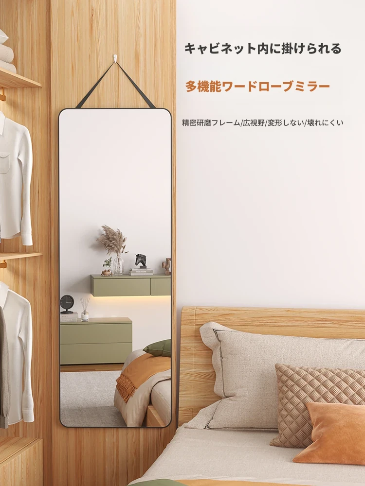 全身鏡付き衣類収納ミラー - 隠しテープで簡単取り付け!学生寮にも最適な壁掛け式試着鏡。おしゃれで便利なアイテムで、毎日のコーディネートをサポートします!