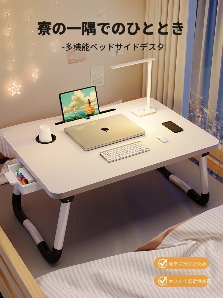 シンプルでおしゃれな折りたたみデスク|寝室や学生のための便利な小テーブル|リラックスした姿勢で作業できる!フロア、窓際、どこでも使える便利なスタイル!