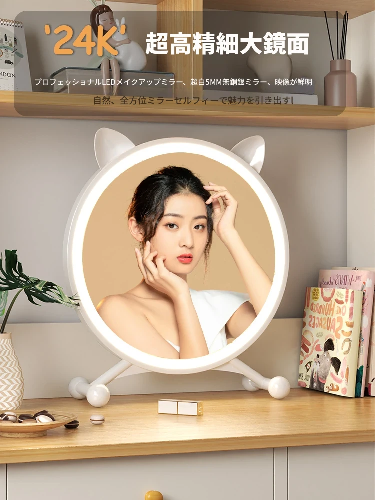 スマートLED化粧鏡 - 明るさ調整可能なデスクトップメイクアップミラー、女子の寝室にぴったり!おしゃれなインスタ風、メイクアップ台に最適な美顔鏡で、自信を持って美を引き立てましょう!