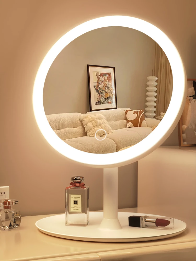 デスクトップ用スマートLEDメイクアップミラー - 学生寮やインスタ映えする寝室に最適な照明付きコスメミラー!美しい肌を演出し、自信を引き出します。おしゃれなメイクアップを楽しむための必需品です!