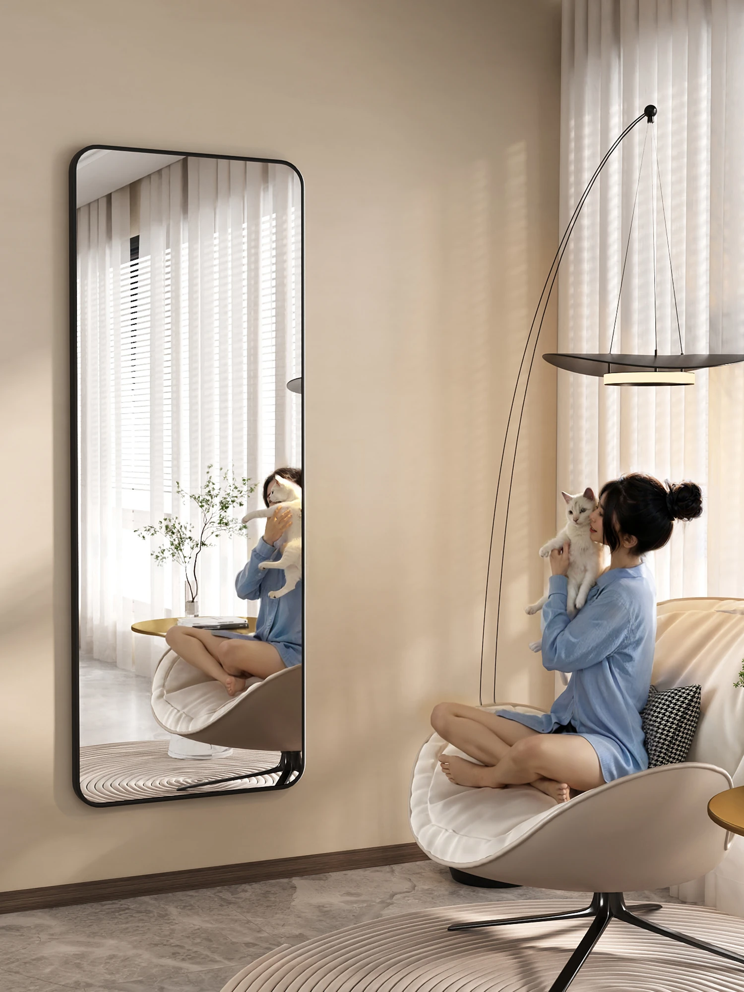 全身鏡 壁掛け式 自粘タイプ おしゃれな女性の寝室に最適!穴を開けずに簡単取り付け、大きな試着鏡でおしゃれチェックを楽しもう!