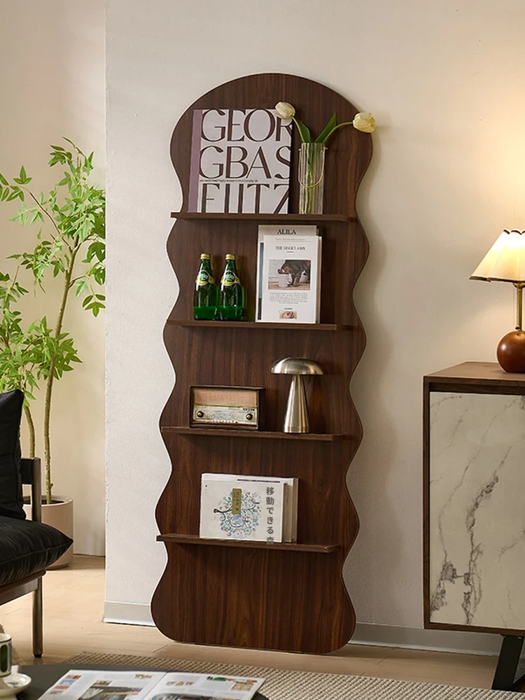 天然木製の薄型書棚 - 壁掛け式、シンプルでスタイリッシュなデザイン!リビングや子供部屋にぴったりの絵本収納ラック。スペースを有効活用し、整理整頓も楽々。おしゃれなインテリアにも最適です!