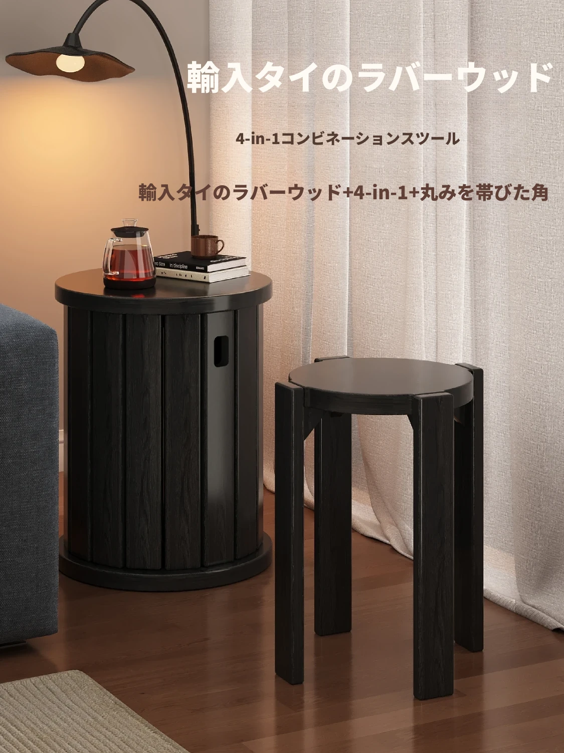 新中式スタイルの実木製重ねられるスツール – 家庭用・ダイニングに最適なコンビネーションスクエアスツール。おしゃれで省スペース、食事やリラックスタイムにぴったり!