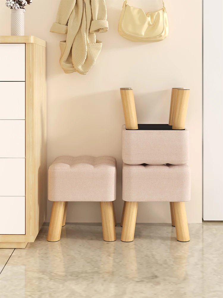 無垢材の家庭用スツール - 玄関での靴の脱ぎ履きに最適!重ねて収納可能、シンプルでスタイリッシュなデザイン。厚手で耐久性抜群、ダイニングやカフェでも活躍する四角いスツール。