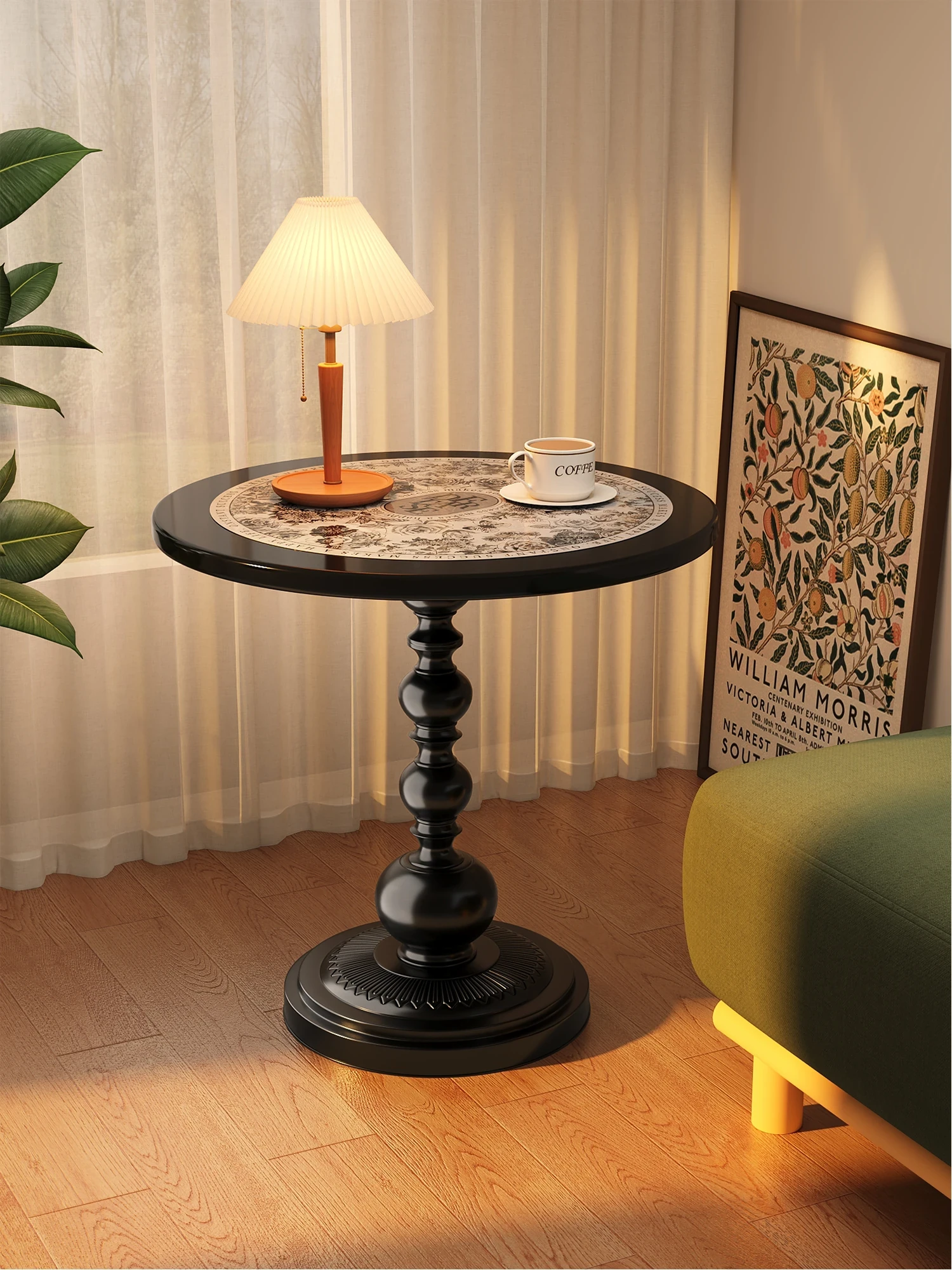 Stylish Black Round Coffee Table with Side Cabinets - Perfect for Living Room, Bedroom, or Balcony in Small Spaces - Modern Minimalist Design