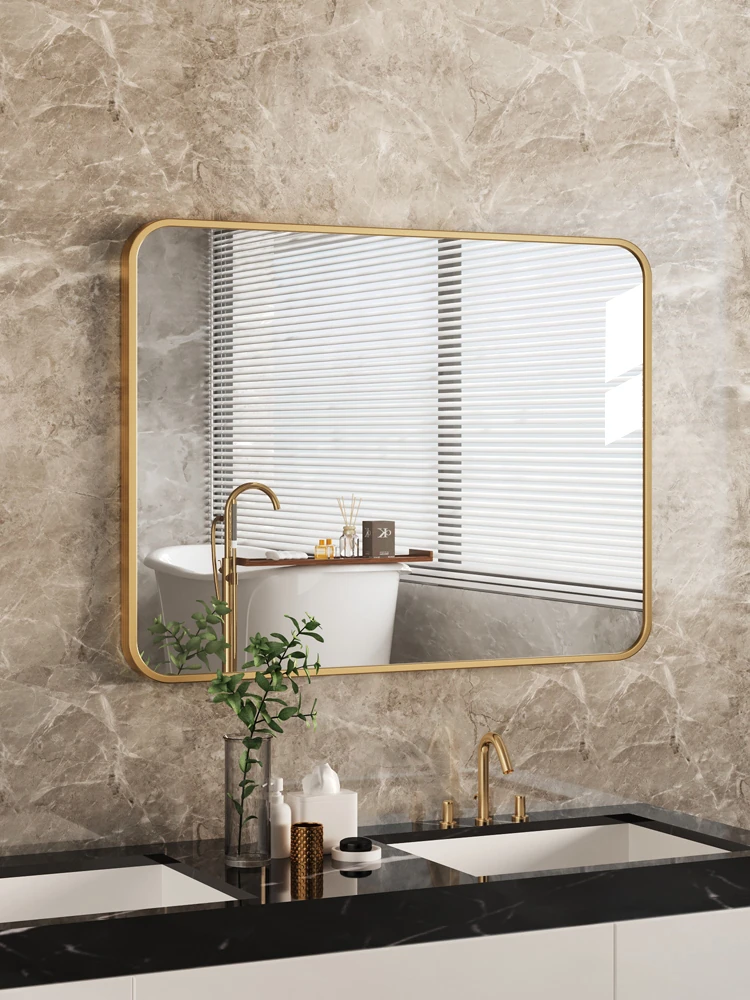 Sleek Luxury Aluminum Alloy Bathroom Mirror - Wall-Mounted, Self-Adhesive, Perfect for Home Use, Ideal for Toilets and Makeup!