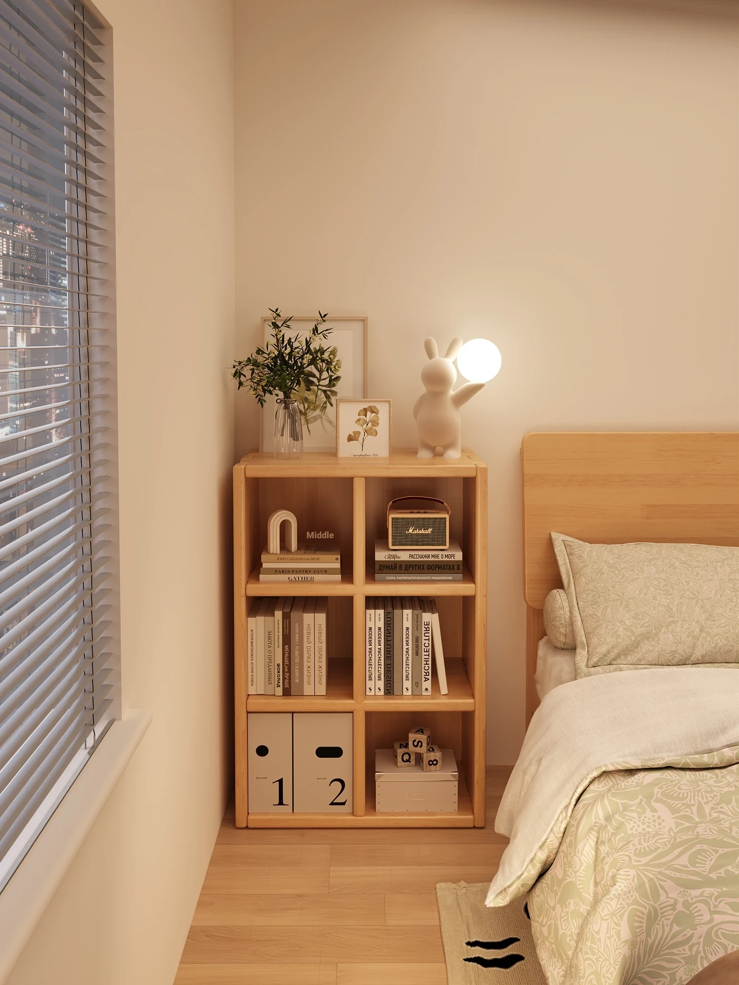 Solid Wood Bedside Storage Cabinet with Bookshelf - Versatile Floor Stand Organizer for Kids' Bedrooms, Easily Combinable Storage Cubes for Home Use