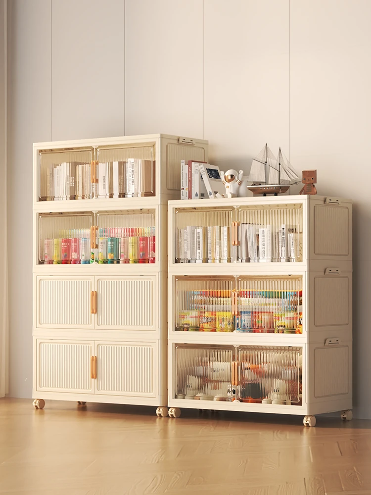 Foldable Storage Cabinet with Wheels - Versatile Bookshelf and Dust-Proof Organizer for Home Use, Perfect for Kids' Snacks and Toys!