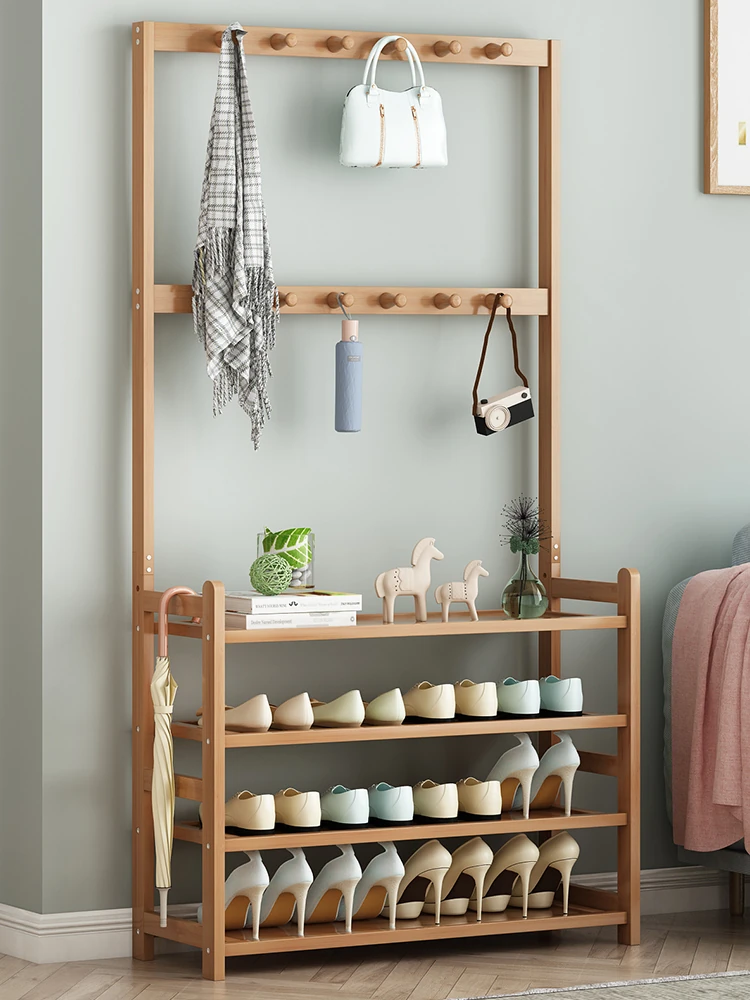 Multi-Layer Solid Wood Shoe Rack and Coat Hanger - All-in-One Entryway Organizer for Bedroom Shoes and Accessories - The Ultimate Storage Solution for Your Home!