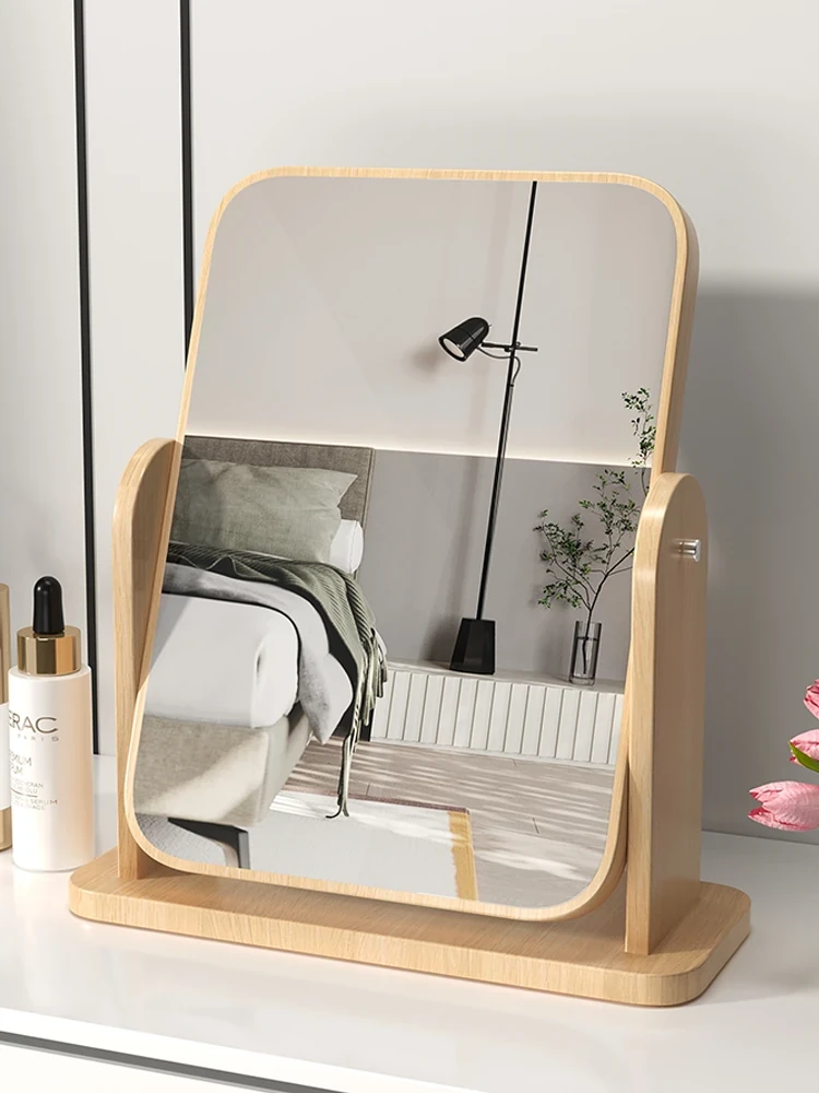 Large Rotatable Makeup Mirror - Simple Design, Foldable Wooden Tabletop Mirror for Home and Dorm Use, Perfect for Students
