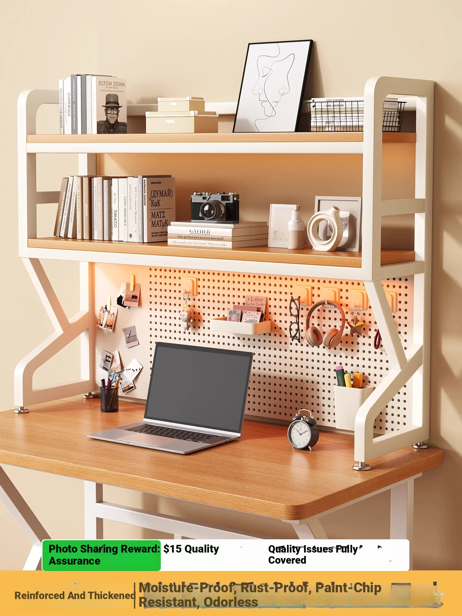 Multi-Layer Desktop Storage Rack - Stylish Iron Bookshelf for Office and Student Desks, Perfect for Organizing Your Computer and Supplies with a Unique Pegboard Design