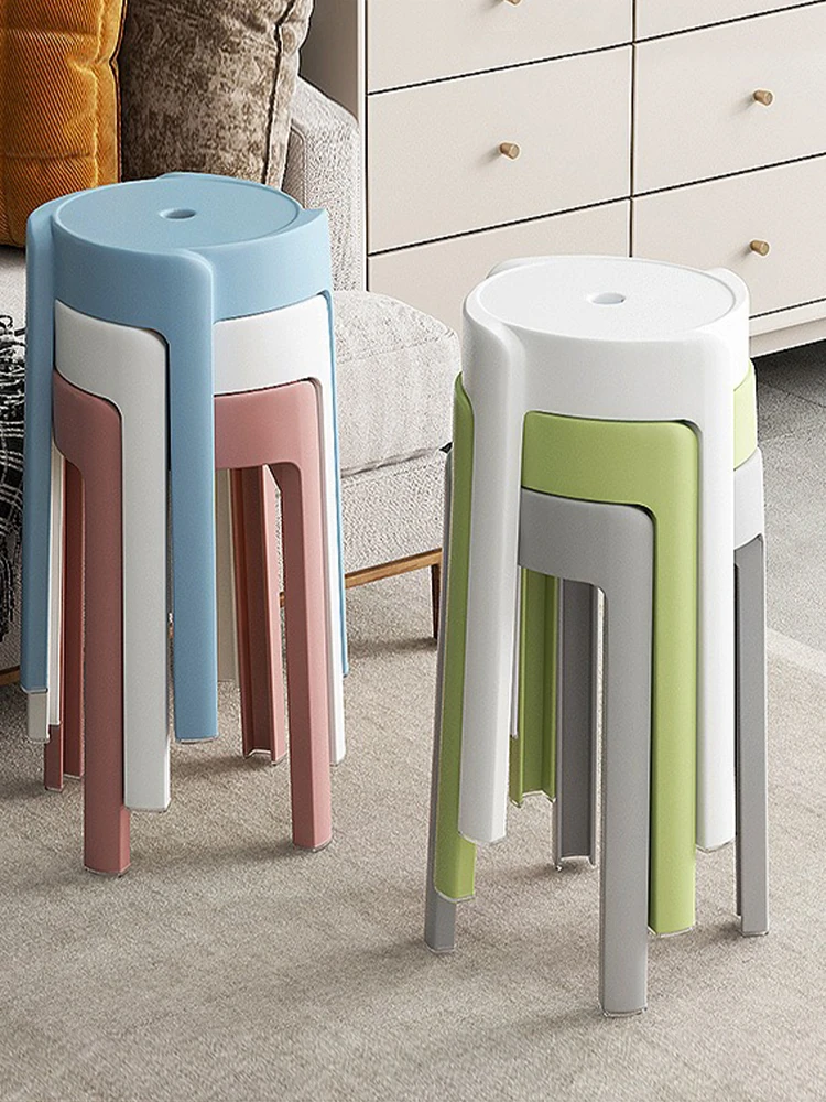 Thickened Stackable Plastic Stool for Home Use - Durable Modern Round High Stool, Ideal for Dining and Commercial Spaces, Sleek Design for Every Setting