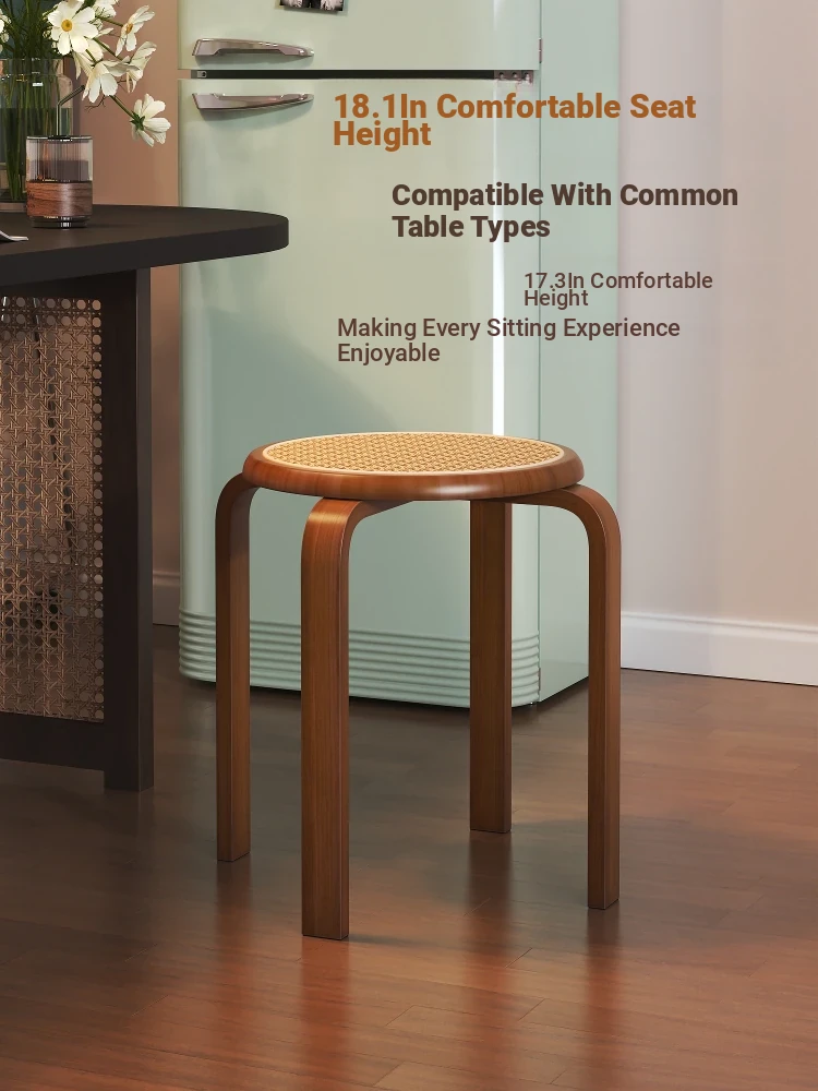 Vintage Chinese Solid Wood Stackable Rattan Round Stool - Durable and Stylish for Home Use, Perfect Extra Seating for Dining Room Guests
